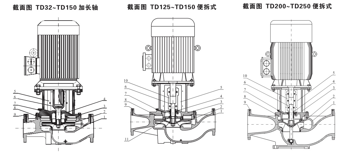 產(chǎn)品設(shè)計(jì)為頂部可拉出的拆裝形式,其可以在不影響管路系統(tǒng)的情況下對(duì)泵進(jìn)行維修。 其中TD125和TD150產(chǎn)品同時(shí)提供加長(zhǎng)軸和便拆式結(jié)構(gòu),TD200及以上口徑的產(chǎn)品設(shè)計(jì)采用整體便拆式機(jī)械密封,更換密封時(shí)無需拆卸電機(jī)。