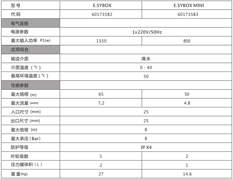 E.SYBO麻.SYBOX MIN堤DAB為單處住宅設(shè)計的自動増壓系統(tǒng);它能提供恒定的水壓,并通過先進的變頻系統(tǒng)翻*優(yōu)化的節(jié)能娜,相比于任何一個傳統(tǒng)產(chǎn)品節(jié)能高達百分之50。無需額外安裝組件;它集成了一臺多級葉輪自吸 泵(8m吸程)、變頻管理系統(tǒng)、流置和壓力傳感器'高分辨率可旋轉(zhuǎn)LCD顯示器和一個膨脹罐;安裝方式靈活,可臥式、立式安裝以及掛墻安裝;水冷高頻電機,減震支腳和電控系統(tǒng)使設(shè)備運行**安靜,外形美觀緊湊,具有恒壓變 頻、自吸、防干轉(zhuǎn)、防凍、防泄漏等功能,*大程度保證系統(tǒng)的**運行;E.SYBO艇具備4臺成系統(tǒng),無線連接功能滿足更多用水要求;意大利原裝進口,24個月質(zhì)保期。